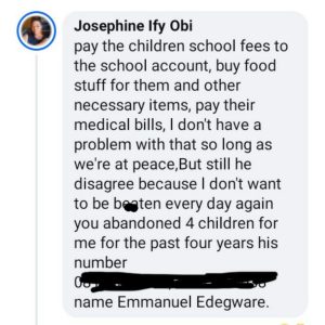 A Nigerian woman, Josephine Ify Obi, has called out her ex-husband, Emmanuel Edegware, for allegedly abandoning their four children because she refused to go back “to being beaten every day”