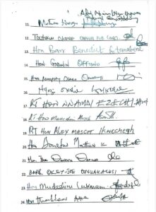 Hon. Peter Aniekwe, Hon. Gwachem Maureen, Hon. Onwunka, Hon. Anayo Onwuegbu, Hon. Nwobosi Joseph, Hon. Amobi Godwin, Hon. Blessing Amadi, Hon. Anthony Adebayo Adepoju, Hon. Dr. Joshua Audu Gana, Hon. Chris Nkwonta, Hon. Emeka Idu, Hon. Peter Ifeanyi Uzokwe