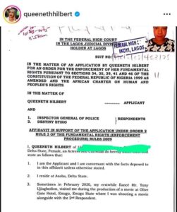 Nollywood Actress Quenneth Herbert Ask Court To Stop Police from Arresting Her, seeks N100Million Damages from Destiny Etiko.