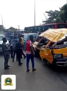 According to a statement issued on Tuesday by LASTMA spokesperson, Taofiq Adebayo, the incident occurred at the Idi-Iroko inward Ogolonto axis when a fully loaded commercial Mazda bus collided with a speeding articulated truck.