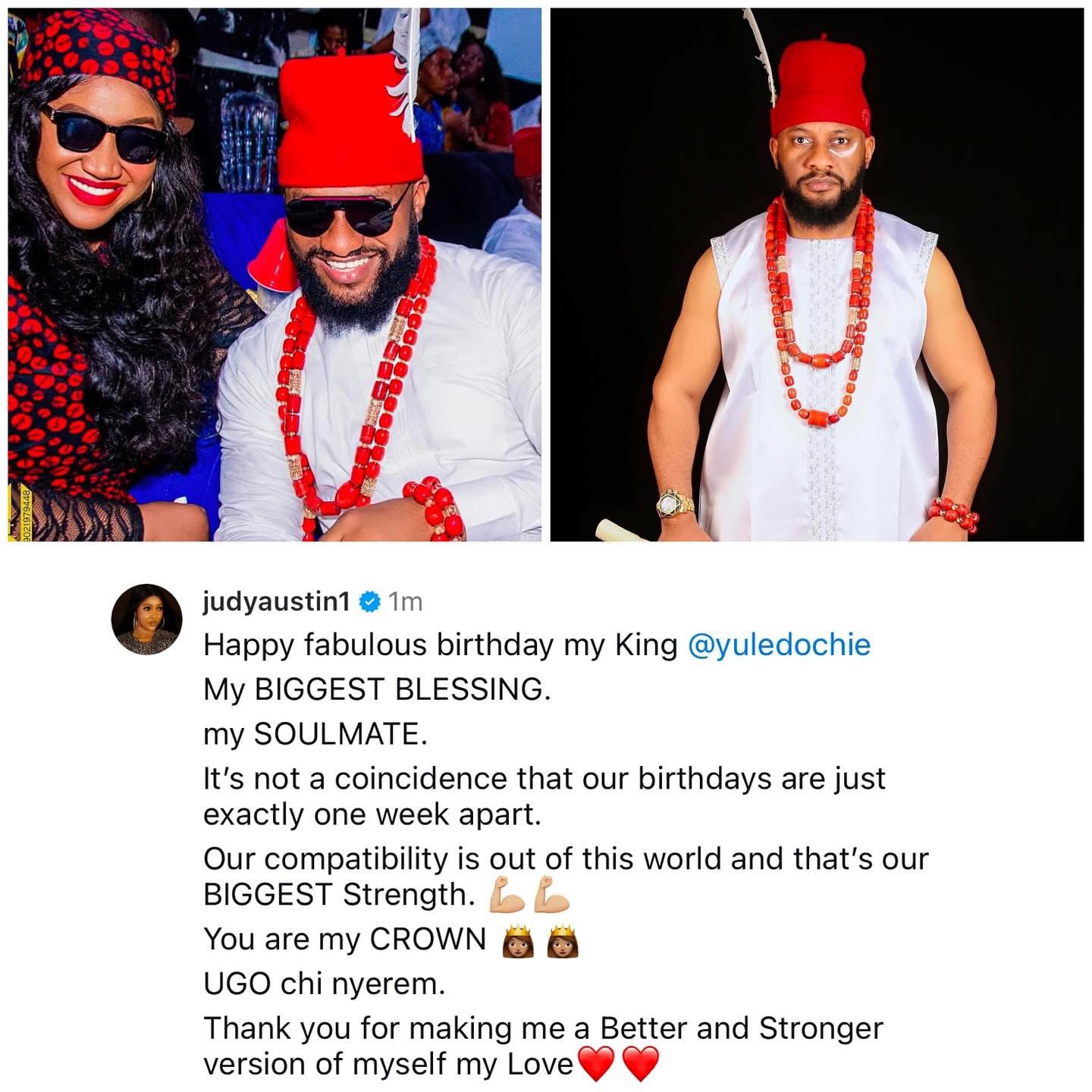 Our compatibility is out of this world and that’s our biggest strength. You are my crown- Judy Austin tells Yul@Edochie as she celebrates him on his birthday