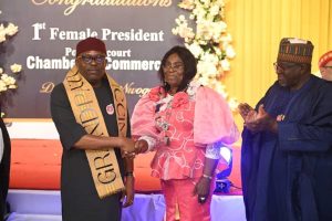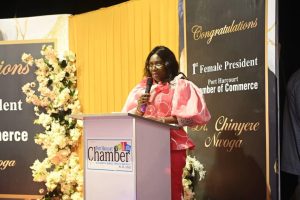 Speaking at her Investiture as the first female President of the Port Harcourt Chamber of Commerce, Industry, Mines and Agriculture, since inception, Dr. Chinyere Nwoga commended Governor Siminalayi Fubara for finding time to attend the event and assured of the continuous collaboration of the Chamber with the government to attract investors to the State.