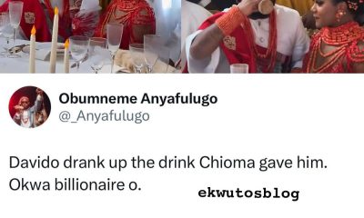 A man has made a lighthearted comment comparing Davido to men who reject the palm wine offered by their wives during traditional weddings. Here’s what...