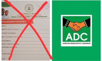 The African Democratic Congress (ADC), Imo State Chapter, raises alarm over a purported “Empowerment Scheme Form” circulating in the name of the Imo State Government...