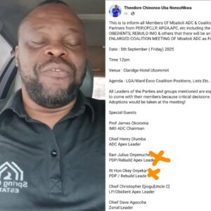 The People’s Democratic Party (PDP) in Mbaitoli Local Government Area, under the leadership of *Hon. Barr. Nzeh Uchenna Sunday Ojini*, has issued a strong caution to Mr.Theodore Chinonso Uba, popularly known as