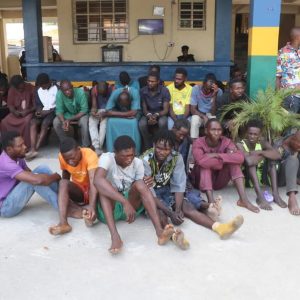Other suspects arrested are Abdul Nai’ja, Josua Steven, Livinus Steven, Ismail Abdullahi, Munir Sada, Ibrahim Yahaya, Yahaya Musa, Dahiru Nasiru, Abdullahi Muhammed, Monday Barnabas, Hamisu Iman, Promise Abanonum, Ehieze Emeka, Ehieze Justice, Mohammed Inusa, Tijanni Suleiman, Promise James, Haruna Auwalu, Ayuba Danjuma, Suleiman Abu, Nafiu Ahmmed, Kamalu Junaidu, Zaradeen Yakubu, Abdulhadi Adam, Mohammed Ibrahim, Chukwu Emmanuel, Douglas Yahaya, Mohammed Lawal, Auwal Musa and Abubakar Kabiru.
