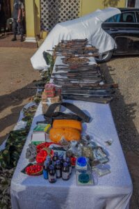 Also, operatives of the FID-STS intercepted the movement of military accoutrements from Kaduna to Zamfara state precisely Shinkafi LGA. In the process, a spot search was conducted and the following items were recovered; 10 sets of military camouflage uniforms, 10 pieces of camel pack, 12 military hats, 3 cardigans, 3 t-shirts, 2 belts, and 3 anklets.