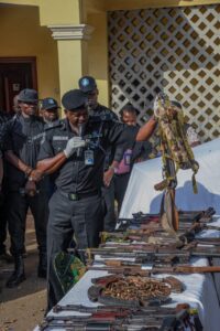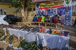 Two suspects – Mushiri Abubakar aged 28, and Ahmed Mohammed aged 40 were arrested. Mushiri Abubakar confessed that he is a childhood friend of an Airforce personnel attached to the Airforce base in Kaduna state who served for only five years before being court marshalled and introduced the idea of selling military accoutrements to Mushiri Abubakar. Further investigation revealed that same Mushiri Abubakar had supplied military materials to the Notorious Bello Turji.