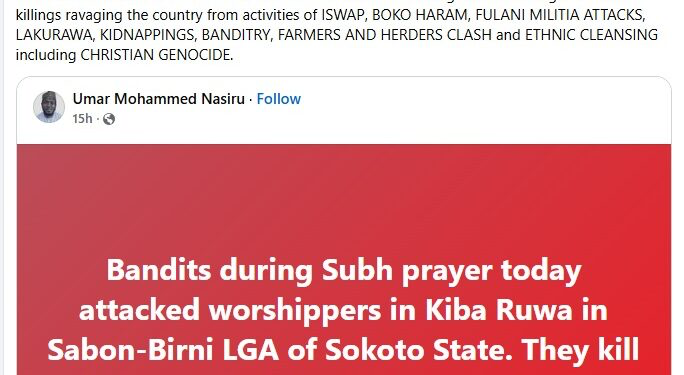 “As a Muslim who was born and raised in Northern parts of Nigeria it will be very difficult to convince a Christian or non believer that Islam is not a violent religion considering the incessant k!llings ravaging the country from activities of ISWAP, BOKO HARAM, FULANI MILITIA ATTACKS, LAKURAWA, KIDNAPPINGS, BANDITRY, FARMERS AND HERDERS CLASH and ETHNIC CLEANSING including CHRISTIAN GENOCIDE,” he wrote.