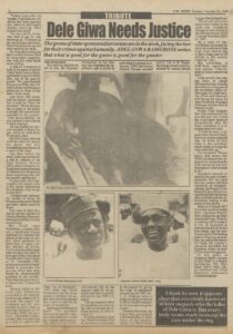 Source: Tribute article, October 19, 1999 (Nigerian publication detailing Dele Giwa’s murder and subsequent legal struggles)