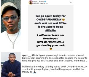 Singer Spyro continues to call out talent manager, Ubi Franklin over the $5000 he was promised for performing at a birthday party in Ghana