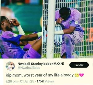 Stanley Nwabali, the goalie for the Nigerian Super Eagles, lost his mother this evening, less than three months after his father passed away.