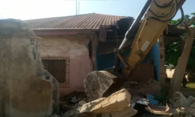 There was confusion on Wednesday as officials of the Imo State Government arrived with a bulldozer and brought down the Orlu District office of the Enugu...