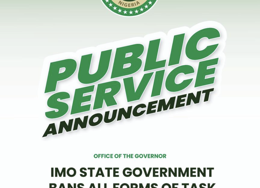 His Excellency the Governor of Imo State, Dist. Sen. (Dr) Hope Uzodinma, CON, GSSRS, has approved the ban on all forms of task force currently operating...