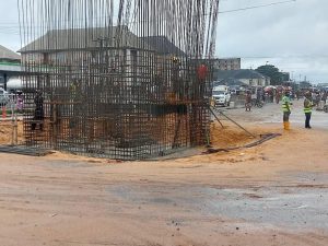 The Commissioner for Works and Infrastructural Development, Ralph Nwosu has again paid a working visit to the ongoing construction of control post Fly-Over