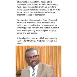 According to Govender, the messages included remarks she described as mocking and emotionally manipulative.