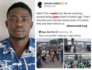 “This is f#cked up. We are watching poverty being weaponized in modern age” – Skit maker, Shank Comics reacts to ‘Say No to Protest’ demonstration in Lagos.