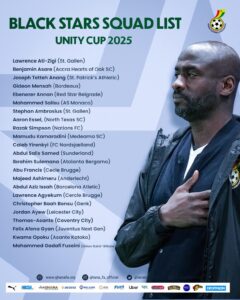 Unity Cup: Black Stars coach Addo unveils 23-man squad
