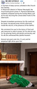 Shortly after administering Holy Communion, 59-year-old priest Raimund Beisteiner was about to return the host to the tabernacle when he “suddenly” collapsed, according to a statement from the Archdiocese of Vienna.