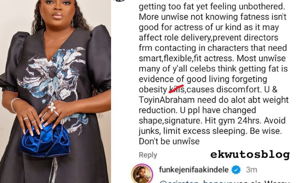 – _Clapping Back at Trolls_: Funke Akindele, a popular Nigerian actress, responded to a troll who gave her unsolicited “fitness advice” with a witty remark.