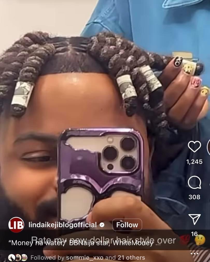 Whitemoney Flaunts Lavish Hairstyle Adorned with Dollar Bills
