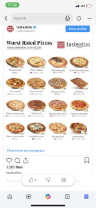 In last place is an Italian pizza: the ‘Mimosa pizza,’ topped with corn and cooked ham. Just above it are the Cuban pizza, the Scottish fried pizza, the Quad City-style pizza (a grilled variation popular in the US), and Canada’s unique pizza-ghetti, which features spaghetti as an additional topping.