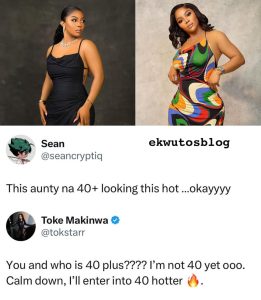 Makinwa replied to the comment, denying being 40 and saying she would be 40 “hotter” when the time came.