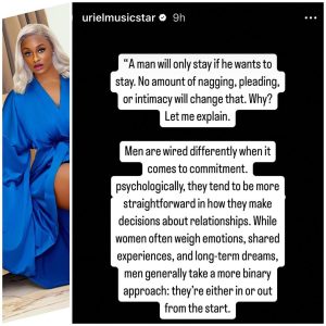 You can’t ‘convince’ someone to love you or stay if it isn’t what they already feel or want.- reality TV star, Uriel, tells women who break their backs just to keep their man