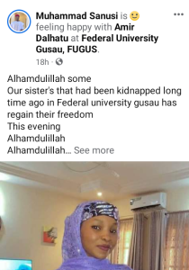 ‘Nine’ of the remaining abducted female students of the Federal University in Gusau, Zamfara State have regained their freedom.